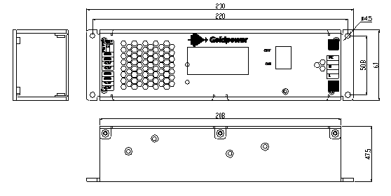 The GPAD401M52-1A industrial power supply is with wide input voltage range (140 to 300Vac), with single way output. The power system is equipped with protections against output short-circuit, over-current and output over-voltage. The power supply is designed strictly in accordance with the safety regulations, which conforms to the safety standards and requirements of information technology.